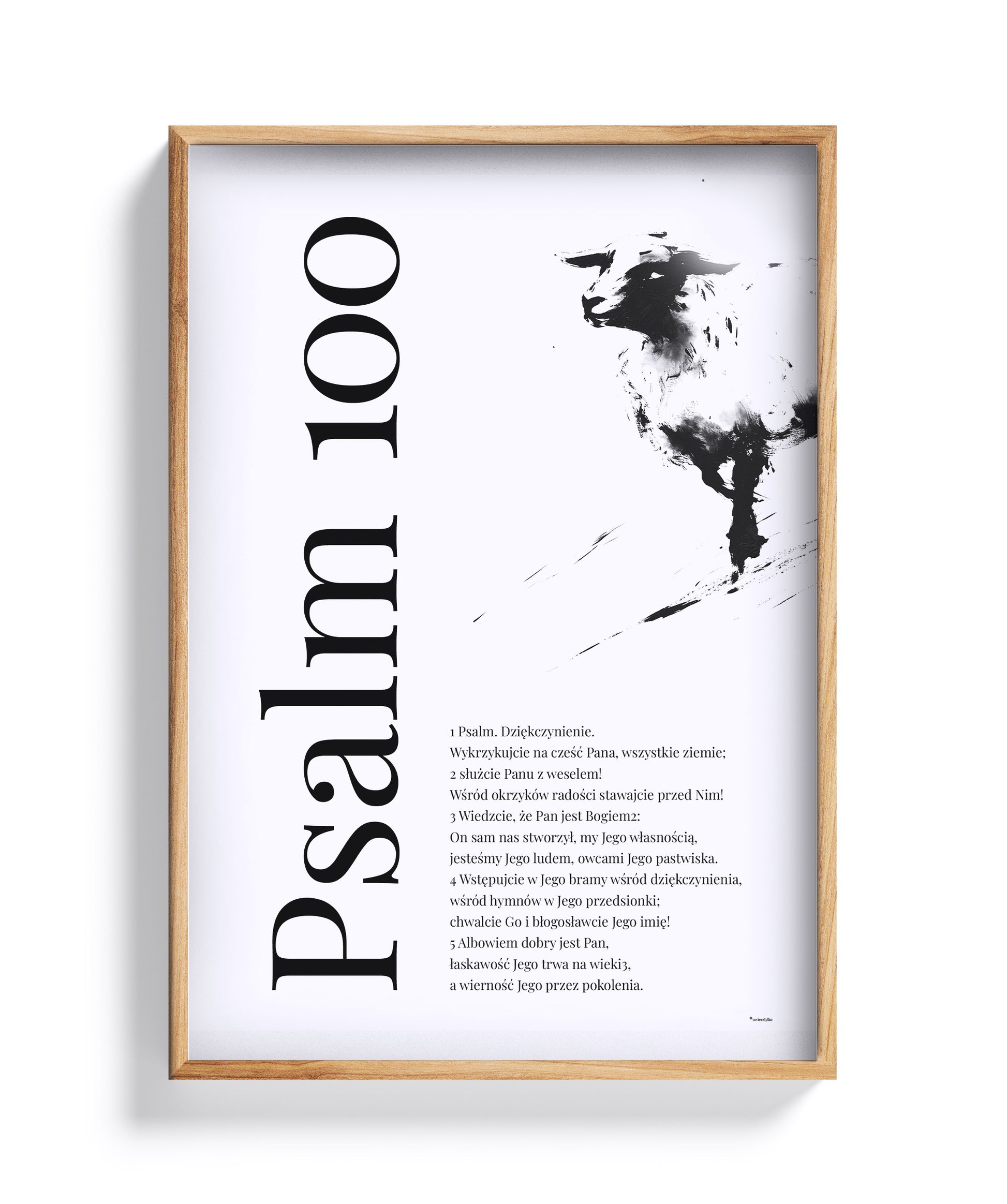 Psalm 100 – plakat z ilustracją owcy, w dębowej ramie